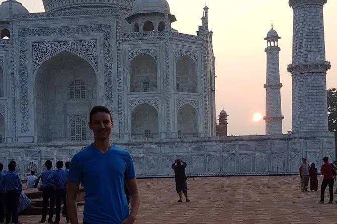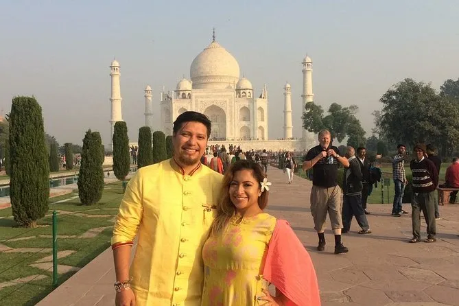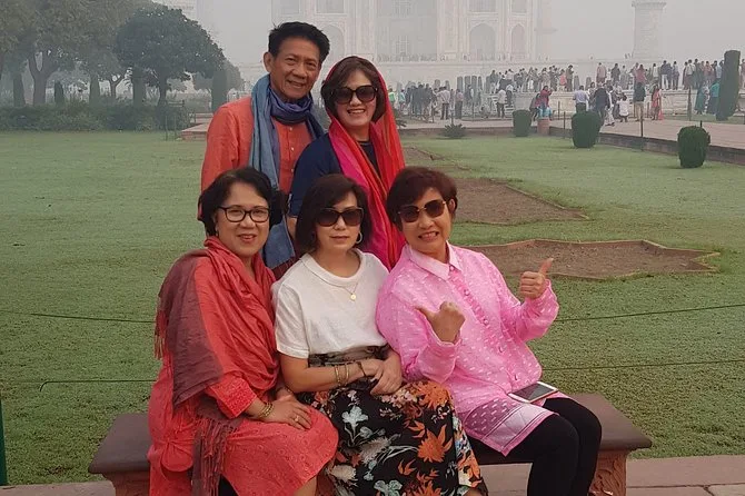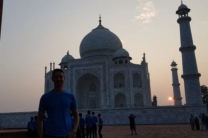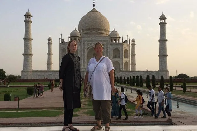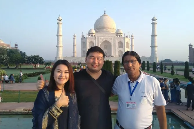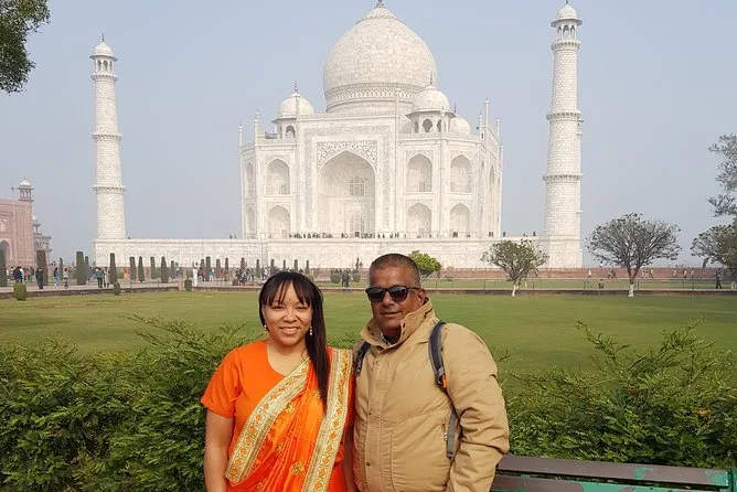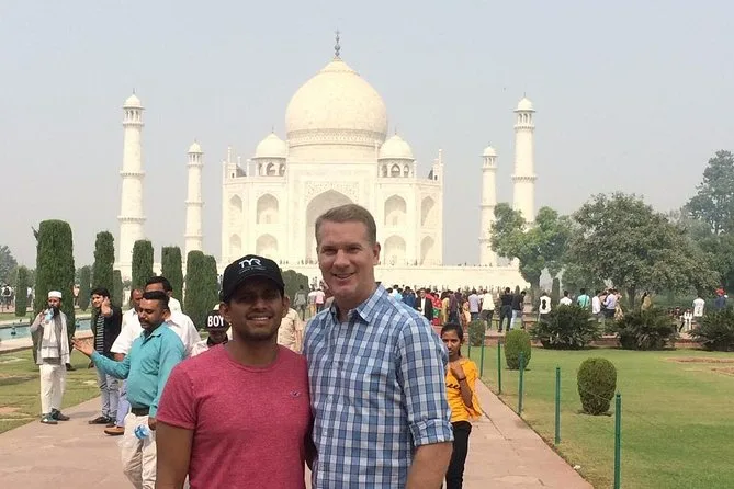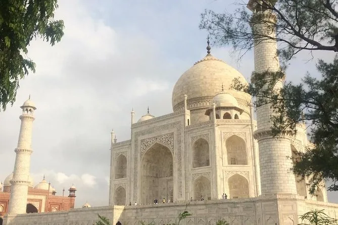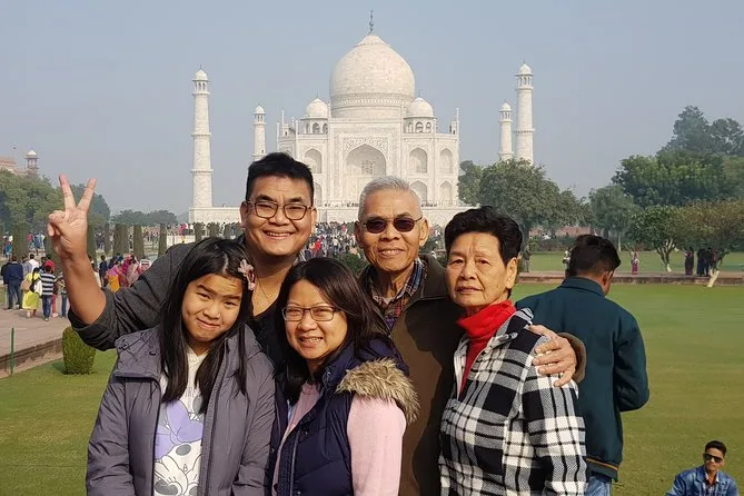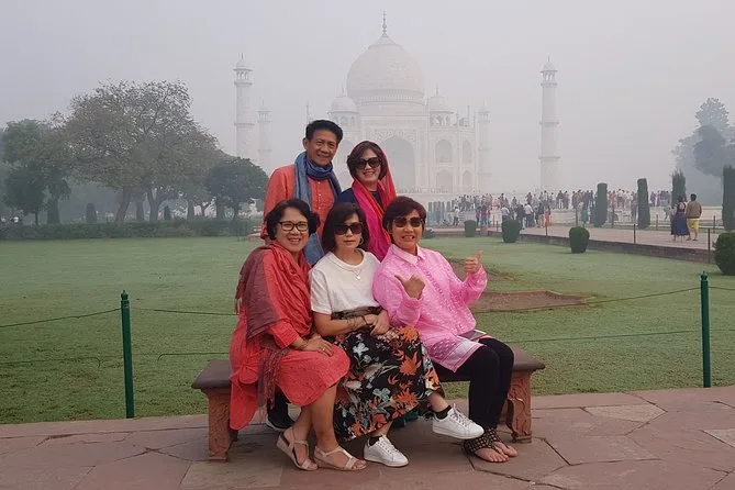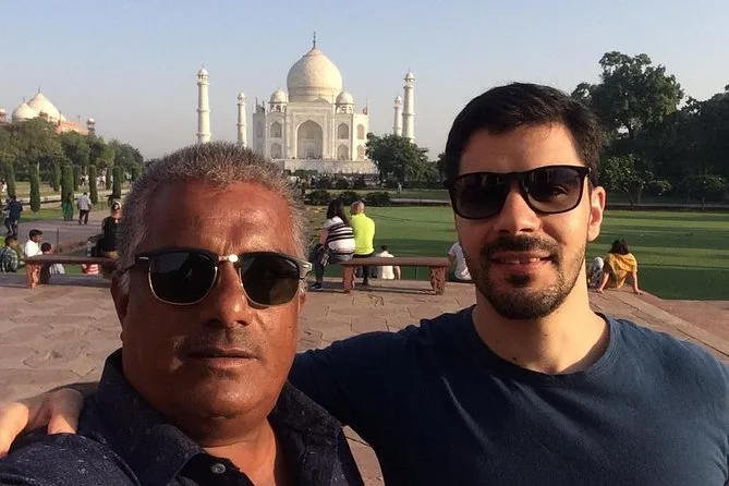 The drive from Delhi to Agra takes about 3 hours each way; expect a full-day tour including visits and lunch.