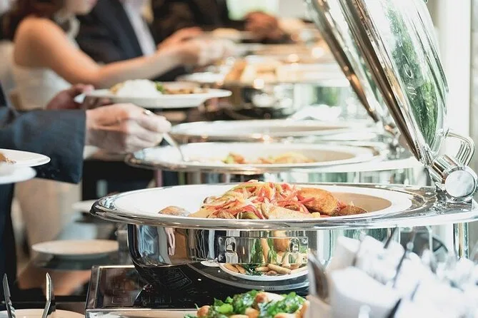 A buffet lunch at a 5-star hotel in Agra is provided with both local and international options.