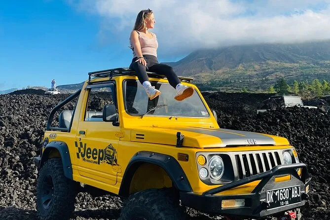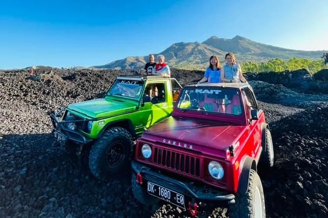 Your day includes round-trip hotel pickup from Kuta, Seminyak, Canggu, Sanur or Ubud areas, entrance fees for Mount Batur access, a private jeep with driver-guide throughout the adventure, plus a warm breakfast with tea or coffee once you reach your sunrise viewpoint before heading into those wild black lava fields.