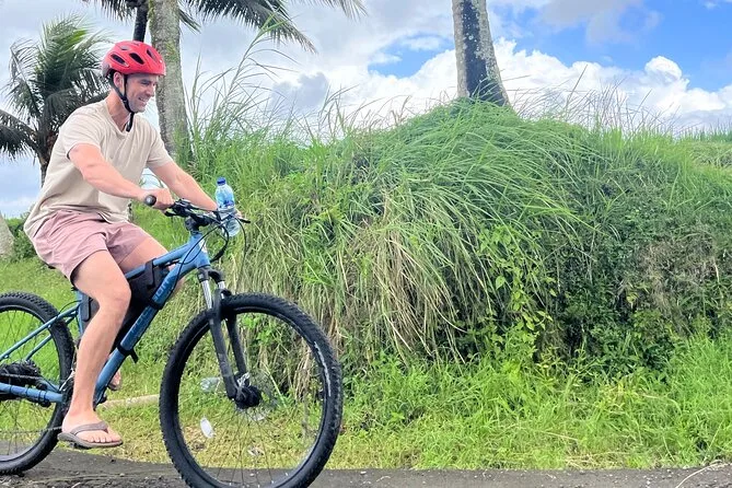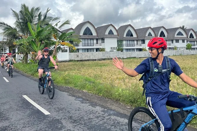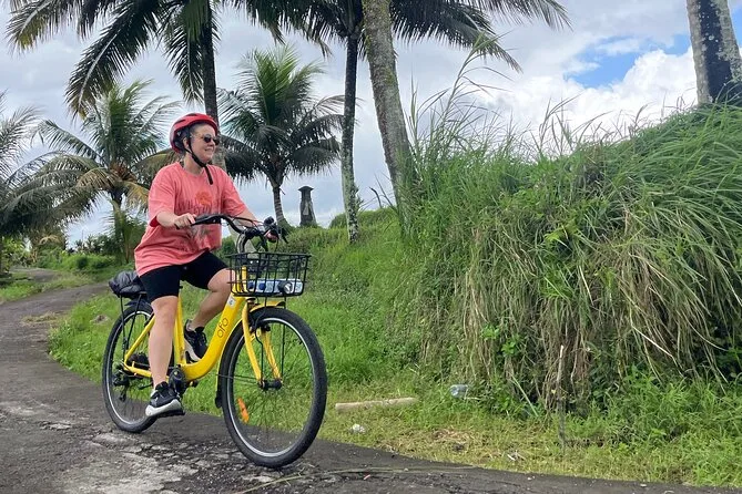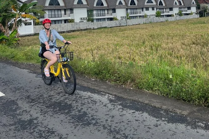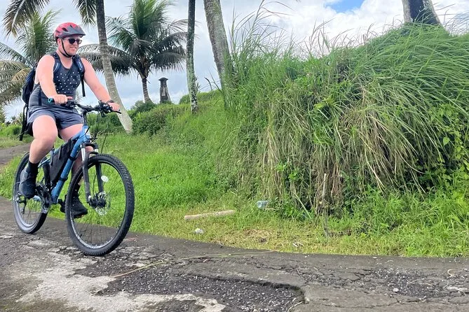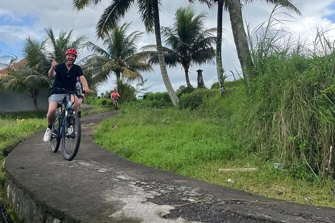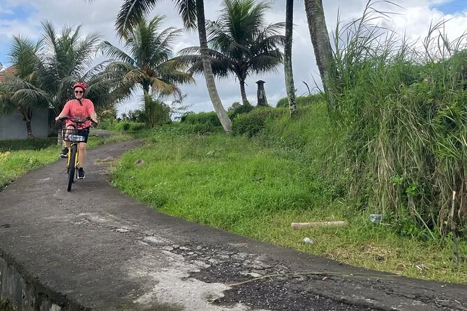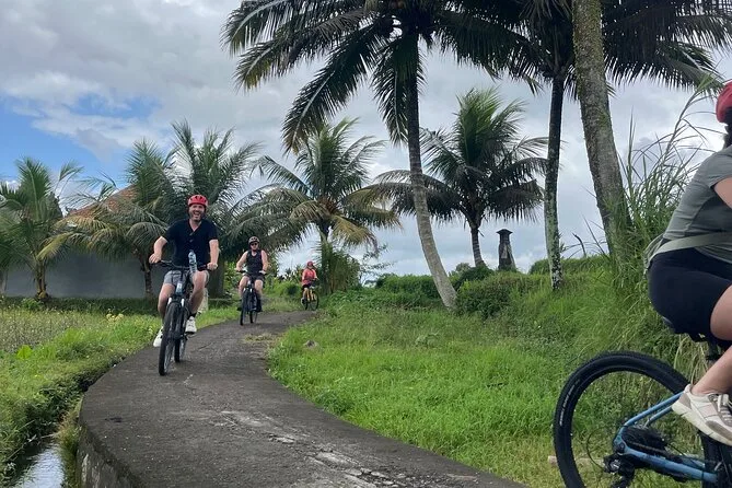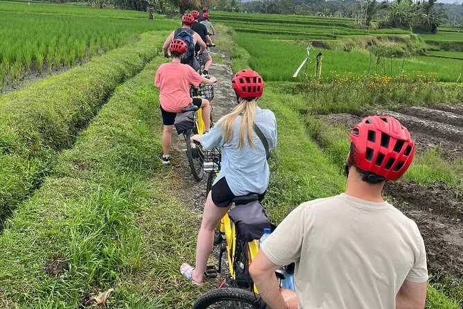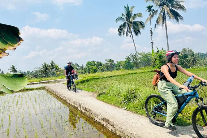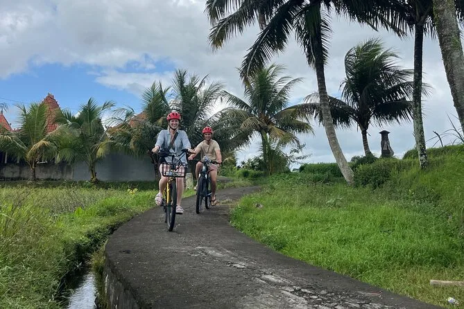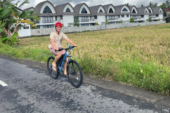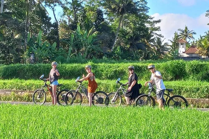 Your day includes use of an electric bicycle with helmet, bottled water along the way, a traditional Balinese lunch at Tegallalang Rice Terrace, plus air-conditioned vehicle transfers with hotel pickup and drop-off within Ubud area — all guided by someone who knows these roads inside out.