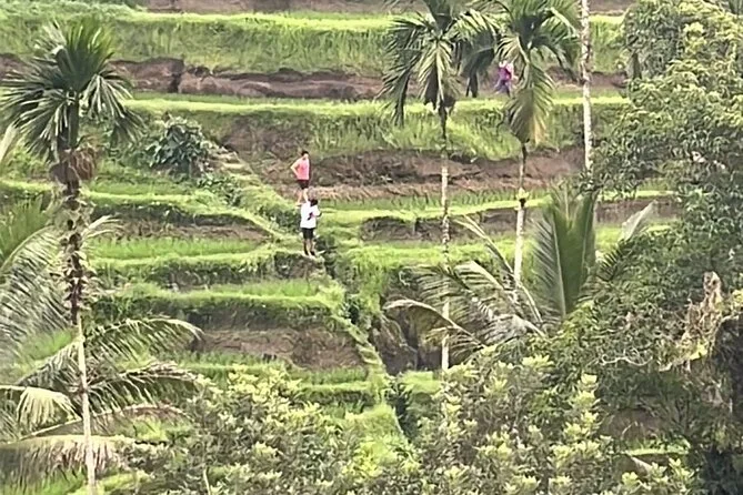 Tegalalang rice terrace came next, just as the sun started to heat up. The fields glowed green and gold, layered down toward the river below. We wandered along narrow paths between paddies while farmers called out greetings in Bahasa. My shoes got muddy but I didn’t care—every corner looked like a postcard but smelled of wet grass and earth.