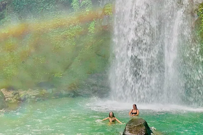 Yes, swimming is possible at Ulu Petanu Waterfall—bring a swimsuit and towel.