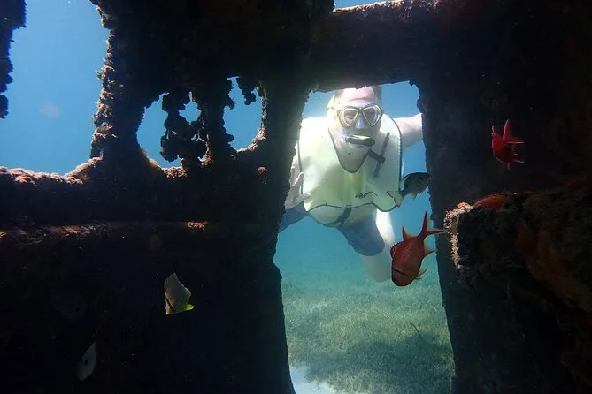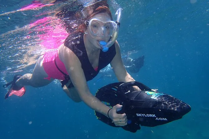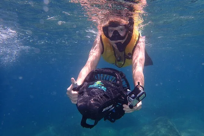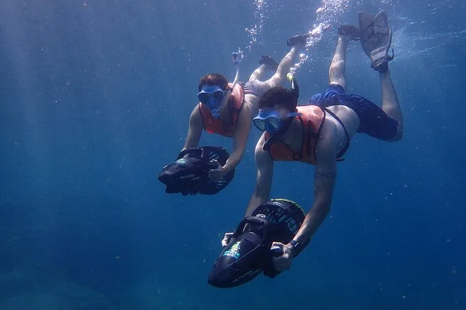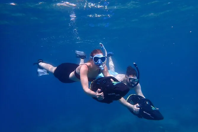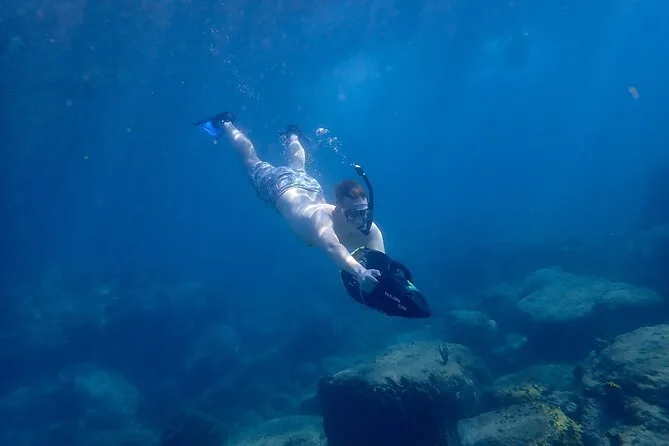 Il tour include sea scooter, giubbotto salvagente obbligatorio, maschera, boccaglio, pinne, acqua da bere e foto subacquee.