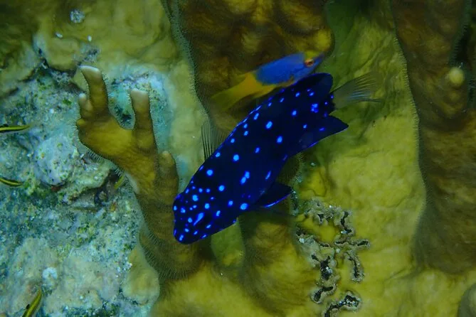 Ci siamo fermati vicino a queste formazioni rocciose selvagge, i Pilastri di Ercole, e abbiamo galleggiato un po’ mentre Marcus ci raccontava di relitti nelle vicinanze. Ho provato a pronunciare “conch” correttamente quando ci ha mostrato una conchiglia; Li ha riso sopra e probabilmente l’ho storpiata. Ovunque esplosioni di colore: pesciolini che sfrecciavano, ricci spinosi nascosti sotto le rocce. Le mani si sono un po’ raffreddate tenendo il manubrio del sea scooter, ma non ci facevo caso perché ero rapito da tutto quello che si muoveva sotto di me.