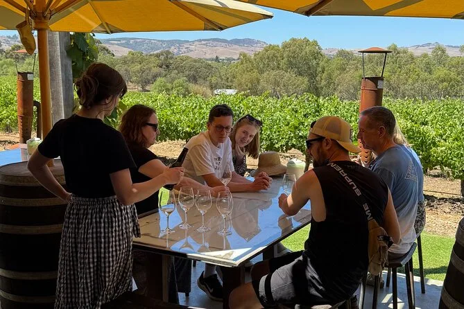Il tuo giorno comprende pick-up e rientro dal centro di Adelaide, quattro degustazioni guidate in cantine storiche della Barossa Valley, pranzo gourmet con abbinamento vini da Kies Family Wines, acqua in bottiglia durante il viaggio—oltre a tempo per passeggiate tranquille nel paese di Tanunda e soste opzionali per ciambelle artigianali e cioccolato prima del ritorno comodo a casa.