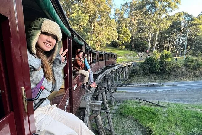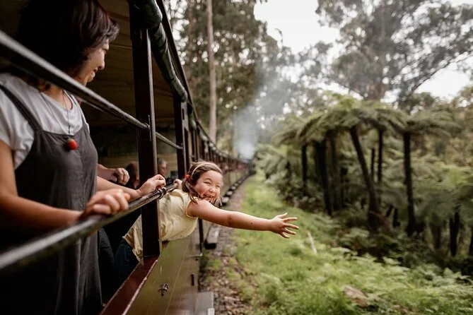 Penserai alle gambe penzolanti dai vagoni aperti di Puffing Billy mentre il vapore sfiora gli alberi secolari delle Dandenong Ranges. Attraversa il ponte Monbulk Creek, esplora i sentieri tranquilli di Emerald Lake Park e condividi risate con la guida locale in questa avventura di mezza giornata — con pick-up in hotel e tempo per respirare aria nuova.