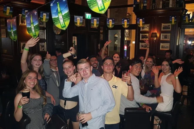 La serata comprende due drink gratuiti nel primo pub irlandese, chupiti omaggio con ogni drink acquistato nei locali successivi, divertenti giochi di bevute come beer pong e karaoke guidati da guide multilingue, visite a quattro pub o club vivaci nel cuore del Bermuda Dreieck di Vienna, più ingresso gratuito in discoteca per ballare fino all’alba—tutto a pochi passi dalle principali stazioni della metro.