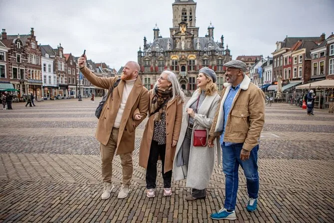 Delft è più tranquilla di quanto immaginassi. Abbiamo passeggiato lungo i canali stretti, tra case un po’ storte e biciclette appoggiate ovunque. Sophie ci ha raccontato della torre pendente della Oude Kerk (la chiamava “Scheve Jan” — io l’ho sicuramente pronunciata male), e siamo entrati a dare un’occhiata dove la luce del sole accarezzava la pietra antica con dolcezza. In piazza del mercato mi sono fermato a osservare la gente del posto che chiacchierava vicino al Municipio — gesti vivaci, tutti coperti ma sorridenti. Nel tempo libero sono entrato in un negozietto di ceramiche blu e ho comprato una tazza che non mi serviva, solo perché il proprietario ha riso del mio olandese.