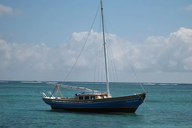La tua serata include la navigazione sul Sirena Azul con una guida locale amichevole, snack leggeri e bevande servite a bordo mentre scivoli lungo la costa e la barriera corallina di Ambergris Caye, per poi tornare dopo il tramonto.