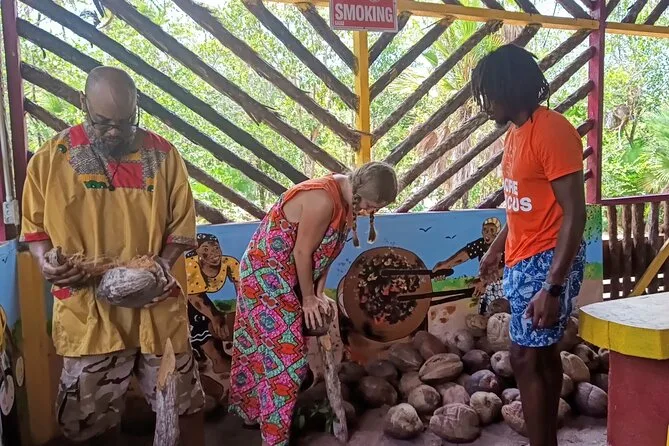 Il tour si svolge sull’isola culturale Kalipuna vicino al villaggio di Hopkins in Belize.