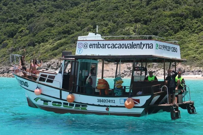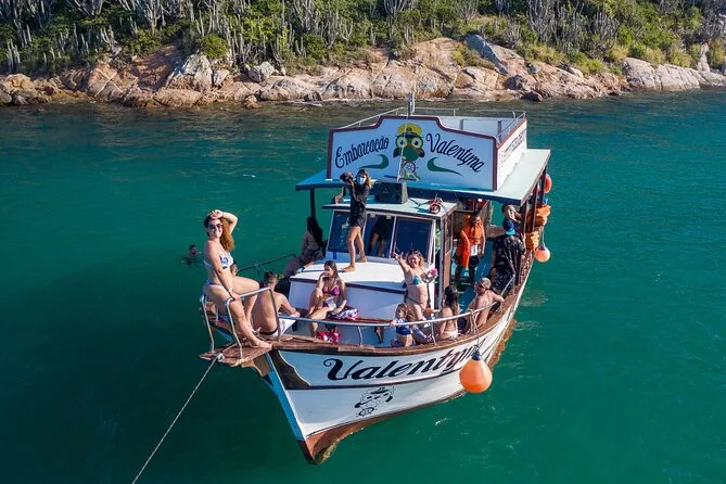 La tua giornata include bevande analcoliche e acqua in bottiglia durante tutta la crociera, caipirinhas illimitate all’open bar a bordo, WiFi funzionante per condividere subito i tuoi momenti, accesso al bagno e supporto completo del team locale in ogni sbarco prima del ritorno al molo di Praia dos Anjos ad Arraial do Cabo.
