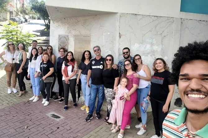 La sosta al Mercado Central è stata un caos meraviglioso — venditori chiassosi, profumi intensi di queijo minas e spezie che si mescolavano nell’aria. Ho comprato arachidi caramellate da un signore anziano che mi ha fatto l’occhiolino e mi ha chiesto se avessi mai visto Lo Borges dal vivo (ancora no). Poi abbiamo attraversato Santa Tereza per vedere la targa commemorativa — una piccola cosa su un muro d’angolo, ma tutti si sono fatti silenziosi per un attimo. È curioso come un posto così possa colpirti più di un grande monumento.