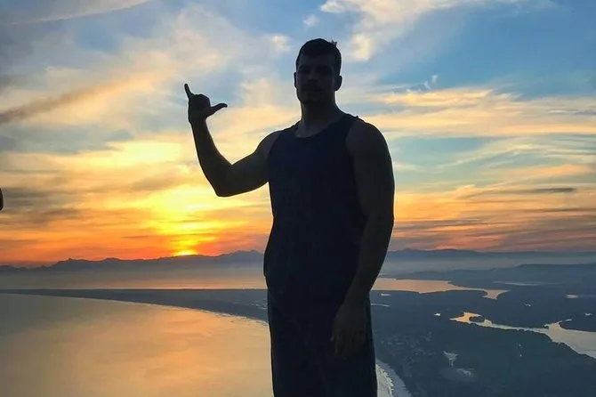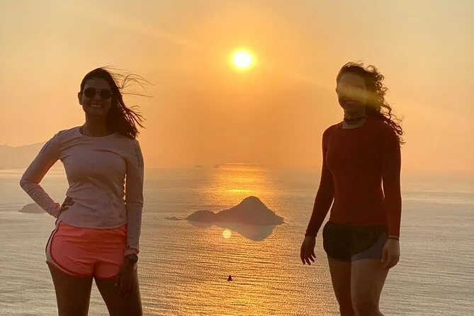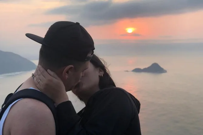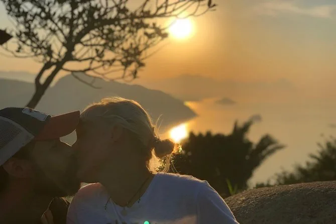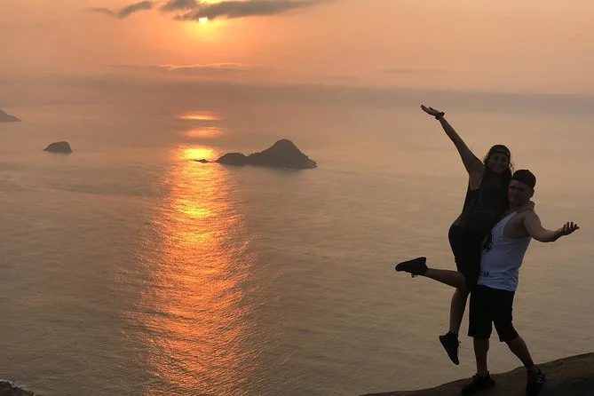 Quando siamo arrivati in cima dopo circa 45 minuti (mi è sembrato più lungo), c’erano solo un paio di escursionisti perché eravamo arrivati presto. La roccia di persona sembra meno impressionante finché non scatti la foto — all’improvviso sembri sospeso nel vuoto con colline verdi e la spiaggia di Marambaia dietro. Ana ha fatto qualche scatto per noi — conosceva tutti i trucchi per quelle foto sulla scogliera. Le mani mi tremavano un po’, ma per l’emozione (e forse per troppo caffè). Siamo rimasti lì più a lungo del previsto a guardare la luce cambiare sulla costa. Qualcuno vicino ha messo della musica soft dal telefono e nessuno aveva fretta.
