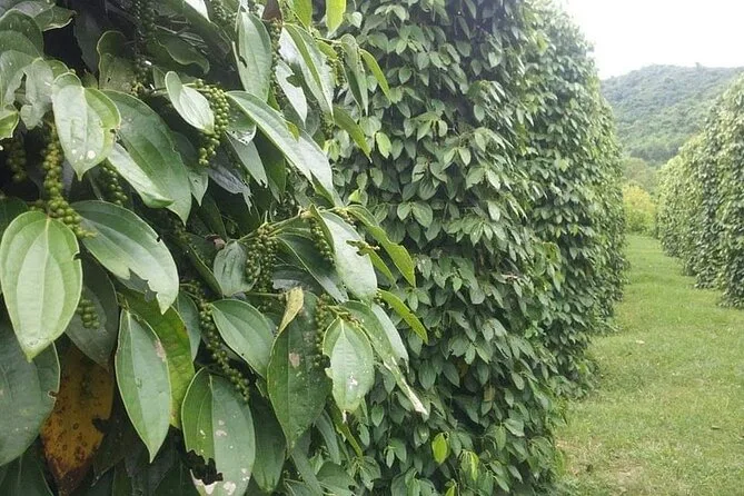 Camminerai in una piantagione di pepe biologica, scoprirai come si coltiva e assaggerai diverse varietà di pepe.