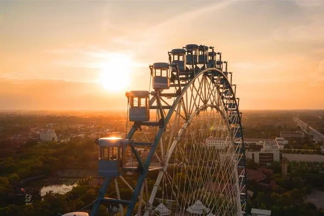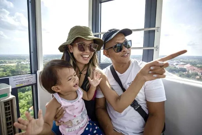 Da 85 metri d’altezza avrai una vista impareggiabile su Siem Reap, con Angkor Wat e il monte Kulen all’orizzonte. Il giro è fluido, comodo e perfetto per famiglie o chiunque voglia vedere la città più famosa della Cambogia da un’angolazione nuova.
