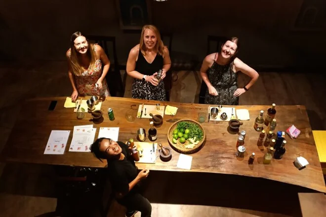 La tua esperienza comprende tre cocktail freschi da preparare con l’aiuto di un bartender locale, una degustazione informale di undici liquori Sombai direttamente nel laboratorio di produzione, tanti snack cambogiani da assaggiare tra un sorso e l’altro, e tempo per chiacchierare di cultura Khmer e consigli di viaggio prima di tornare in città.