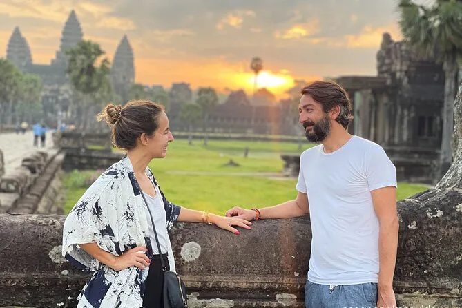 Parti da Siem Reap in tuk tuk prima dell’alba per vedere il sorgere del sole su Angkor Wat con una guida locale, esplora templi antichi come Ta Prohm e Bayon prima che arrivino le folle, gusta la torta di palma in un villaggio rurale a colazione e ascolta storie autentiche dietro ogni pietra — ricordi che porterai con te molto dopo aver lasciato la Cambogia.