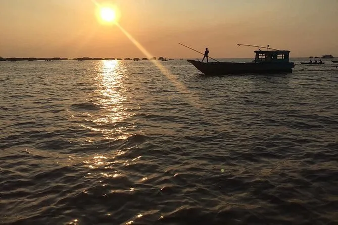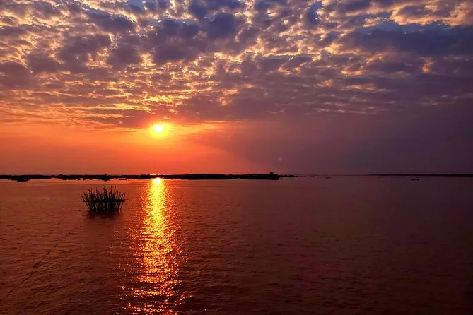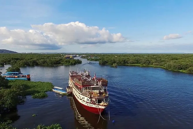 Parti da Siem Reap per esplorare i vasti villaggi galleggianti di Tonle Sap con una guida locale, fermandoti in una piantagione di loto prima di navigare tra scuole e case sull’acqua. Goditi una cena e bevande illimitate a bordo della storica Queen Tara mentre il tramonto colora il lago — un’emozione che porterai con te a casa.