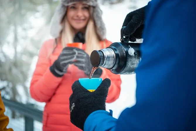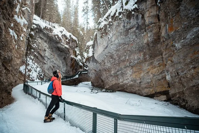La tua giornata comprende la guida professionale locale che fornisce ramponcini e bastoncini per sicurezza sui sentieri ghiacciati, oltre a cioccolata calda e biscotti al acero condivisi con il piccolo gruppo prima del rientro attraverso il paesaggio invernale del Parco Nazionale di Banff.