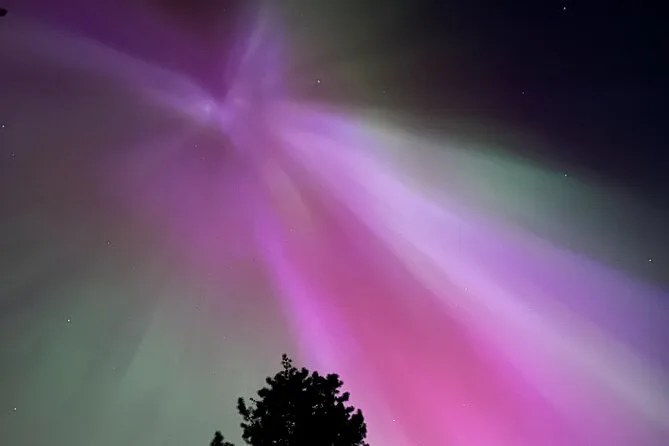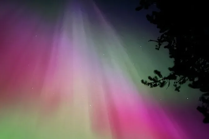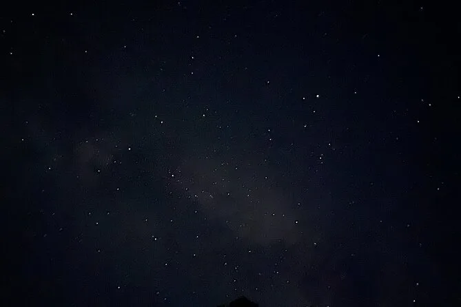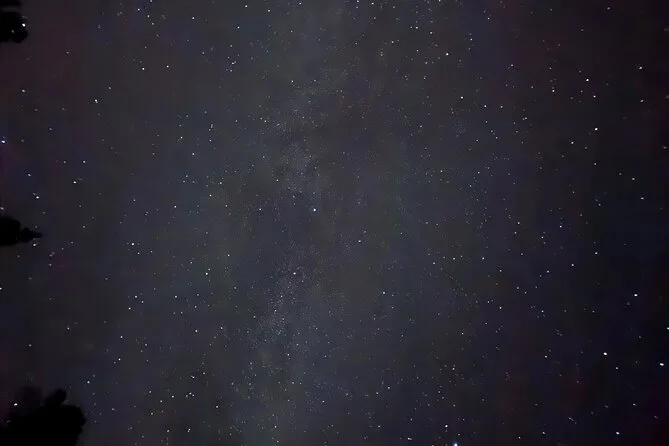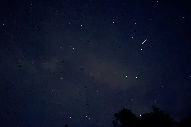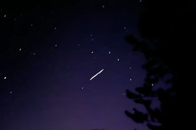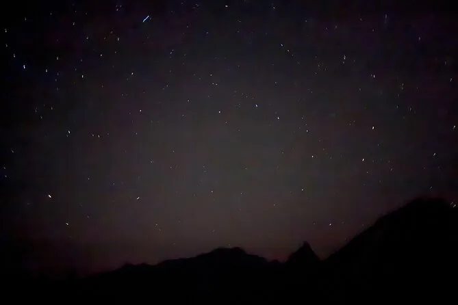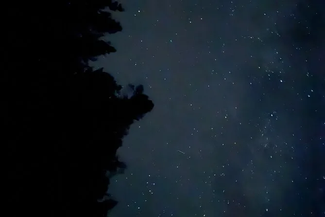 Sam ha mantenuto un’atmosfera rilassata — ci ha indicato dove a volte passano gli alci (non ne abbiamo visti, ma mi aspettavo quasi di scorgere qualche corna nell’ombra). Il sentiero era per lo più pianeggiante, cosa che mi ha sorpreso per Banff. A un certo punto ci siamo fermati e ci ha fatto spegnere le torce per un minuto. È diventato così buio che perfino il mio respiro sembrava più forte del solito. Qualcuno ha sussurrato che si sentiva il freddo nell’aria — sembra strano finché non ci sei davvero. Quando le stelle hanno iniziato a comparire sopra di noi, sembrava che qualcuno avesse acceso un cielo diverso.