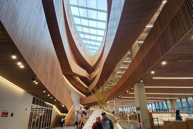 La Biblioteca Centrale è stata la sorpresa più grande. Di solito non rimango impressionato dalle biblioteche, ma le curve e la luce all’interno hanno fatto fermare tutti per un attimo. I bambini correvano in calzini (pare sia normale qui?), e si sentiva un leggero aroma di caffè da qualche piano sopra. Poi siamo entrati in un giardino interno — onestamente non mi aspettavo palme in Alberta — e abbiamo attraversato questi passaggi coperti che collegano metà della città per non congelare d’inverno. Sembrava di scoprire un segreto locale.