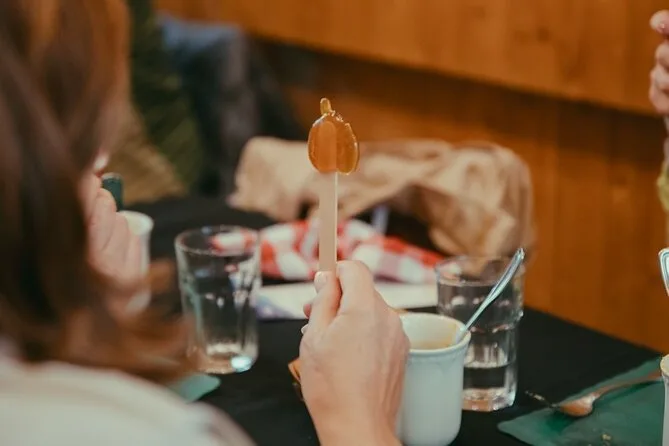 Credo che la mia tappa preferita sia stata La Bûche. La zuppa di piselli era densa e leggermente dolce, e tutti abbiamo provato a versare il sciroppo d’acero sulla neve senza fare un disastro (io ho perso la sfida). Qualcuno ha chiesto del “pâté chinois” — Marie ha riso chiamandolo la risposta del Québec allo shepherd’s pie. Accanto a noi c’era una coppia anziana che ha iniziato a raccontare storie della loro infanzia qui; il loro francese era veloce ma caloroso. Continuavo a sentire l’odore di legna bruciata provenire da fuori.