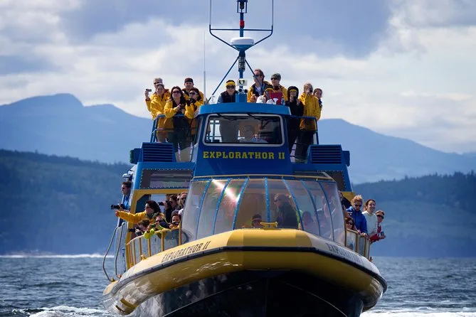 La tua giornata include il transfer andata e ritorno dal centro di Vancouver (se prenotato in anticipo con un costo extra), una guida naturalista che accompagna con commenti dal vivo durante il viaggio da Steveston attraverso le Gulf Islands e lo Stretto di Georgia, acqua in bottiglia e barrette di cereali come snack a bordo, giacche antivento gialle per proteggerti dagli spruzzi, un libro attività Orca Ranger con badge per i bambini che lo desiderano — e se non vedi balene? Ti regaliamo un altro tour gratuito senza scadenza.