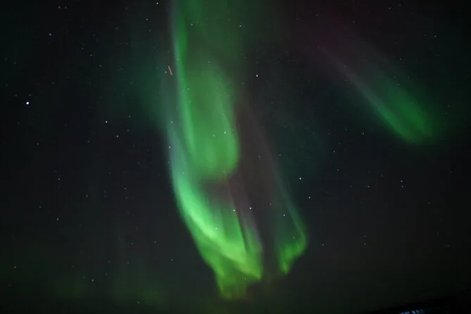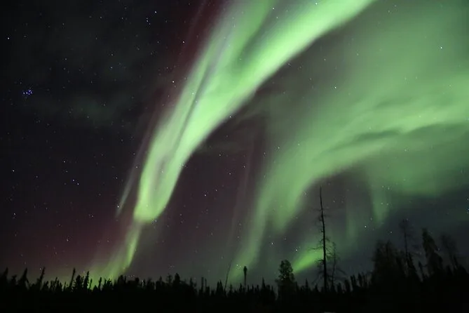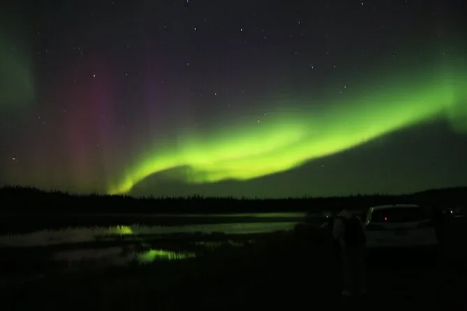 La tua serata inizia con il pickup da qualsiasi punto di Yellowknife — hotel o B&B — e una guida-autista amichevole che racconterà storie lungo la Ingraham Trail. Ti fermerai a tre laghi diversi per ammirare l’aurora e scattare foto professionali gratuite in ogni luogo. Durante il tour saranno serviti biscotti e bevande calde, prima del ritorno in hotel a fine serata.