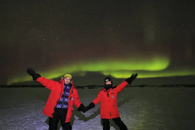 La serata include il pick-up e il ritorno in hotel nel centro di Yellowknife, spostamenti tra vari laghi scelti per le migliori viste dell’aurora, tante bevande calde e biscotti a bordo (fidati, sono un conforto prezioso), più l’aiuto per scattare foto così potrai goderti il momento senza impazzire con il telefono sotto il freddo.