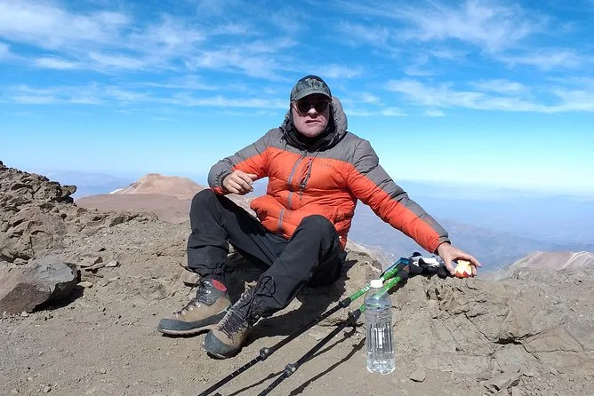 Il tuo posto include il trasferimento andata e ritorno da Santiago alle montagne (con soste a Farellones), guide locali esperte come Felipe che conoscono bene questi sentieri, attrezzatura da campeggio (tende fornite) e colazione al campo base ogni mattina. Sono ammessi animali di servizio; seggiolini per bambini disponibili su richiesta.