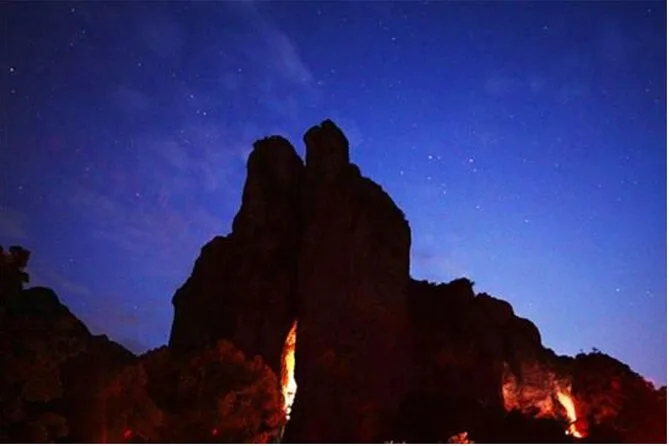 Abbiamo fatto ritorno dopo il tramonto per rivedere Lingfeng. Le rocce si illuminano di luci dorate strane di notte — un po’ inquietanti ma anche bellissime. I bambini correvano con giocattoli luminosi mentre gli anziani sedevano tranquilli sulle panchine a guardare i colori cambiare. L’atmosfera era diversa dal giorno; più silenziosa, come se tutti aspettassero qualcosa. A quel punto le gambe erano stanche, ma non avevo voglia di andarmene.