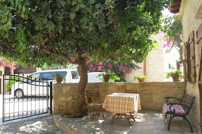 Il tuo giorno include il prelievo da qualsiasi punto a Paphos con veicolo climatizzato; tutte le entrate; degustazioni guidate di formaggi, olio d’oliva, miele e dolci; visita a cantina con degustazione; più un pranzo meze completo in taverna con bevande prima del rientro nel pomeriggio.