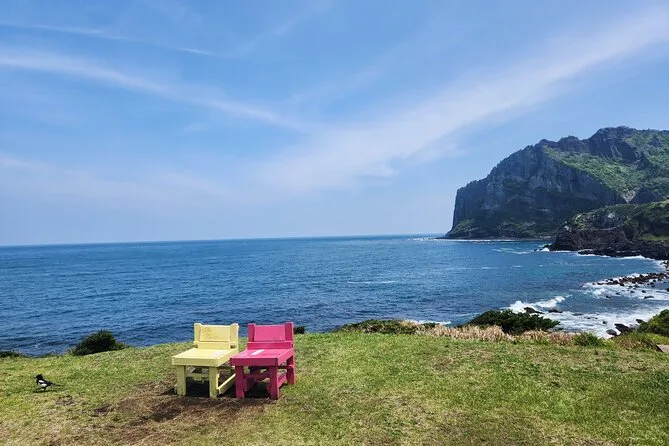 Il tuo giorno include pick-up da vari punti di Jeju City, tutte le entrate ai siti UNESCO come Seongsan Ilchulbong e le grotte di lava di Ilchulland, un veicolo climatizzato con guida bilingue autorizzata che si occupa di tutta la logistica, costi di parcheggio e carburante coperti — e tempo per il pranzo prima di tornare o esplorare il mercato di Dongmun in autonomia.