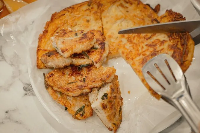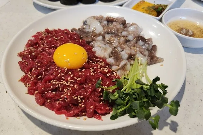 Assaggerai più di 11 piatti coreani, tra cui pancake jeon, vino di riso makgeolli, polpo vivo (opzionale), carne cruda e le ciambelle kkwabaegi.