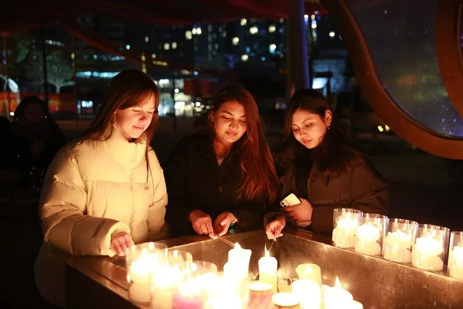 L’ultima tappa è stato il tempio Jogyesa. Lanterne ovunque, che diffondevano colori soffusi sui volti di tutti. Qui era più tranquillo; anche il rumore della città sembrava fermarsi fuori da quei cancelli. Minji ci ha spiegato un po’ del buddhismo coreano mentre guardavamo la gente accendere le candele — aveva un modo di parlare così calmo che avrei voluto ascoltarla ancora a lungo. Il tour finiva lì, ma onestamente avrei potuto restare sotto quelle lanterne per un’altra ora, respirando l’incenso e l’aria della notte.