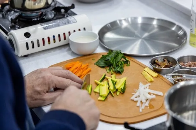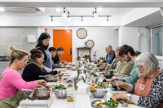 Con una guida locale esplorerai il mercato di Mangwon a Seoul, assaggiando snack di strada prima di andare in uno studio accogliente per una lezione pratica di cucina coreana. Avrai il tuo spazio privato per preparare tre piatti classici come bibimbap o stufato di kimchi, poi ti siederai a gustare il pranzo (con vino di riso). Un’esperienza vivace e divertente che ti lascia ricette nuove — e forse anche nuovi amici.