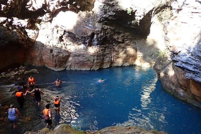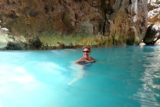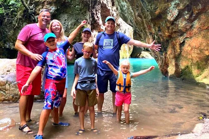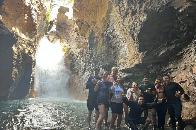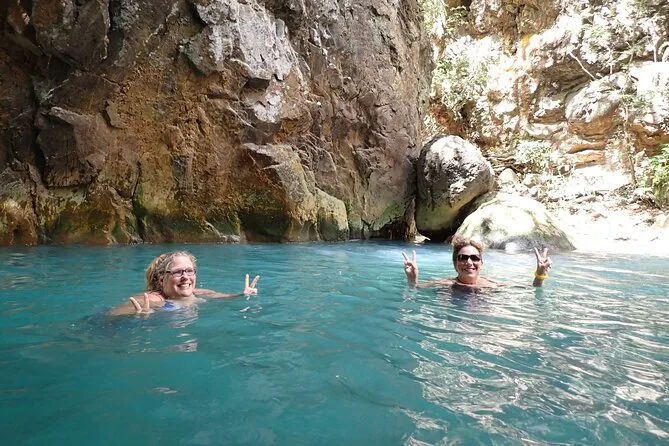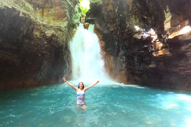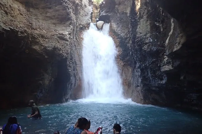 La giornata include la guida di un esperto locale che conosce ogni angolo del sentiero, l’uso di dry bag per i tuoi oggetti (fidati, ti serviranno), accesso a spogliatoi e bagni prima o dopo le guadate, e giubbotti salvagente per maggiore sicurezza nella grotta della cascata dal blu profondo.