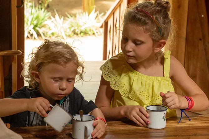 Sì, parteciperai a laboratori pratici con canna da zucchero, caffè e cioccolato nella casa tradizionale.