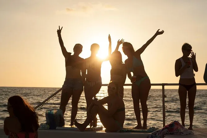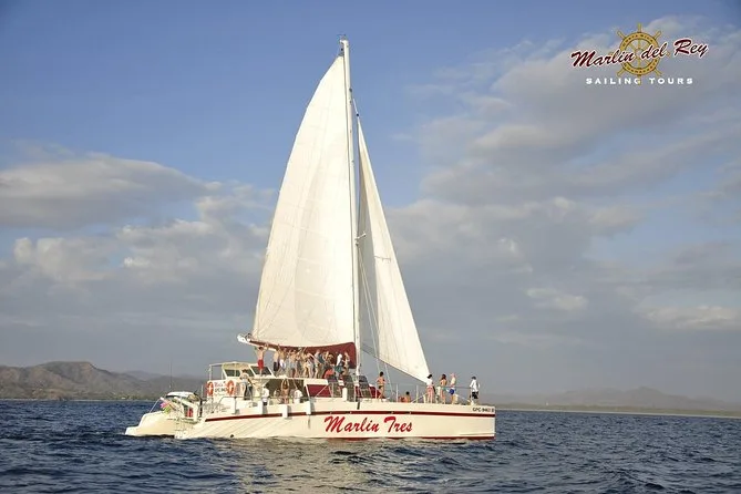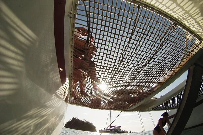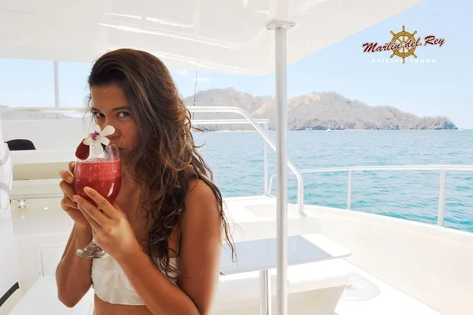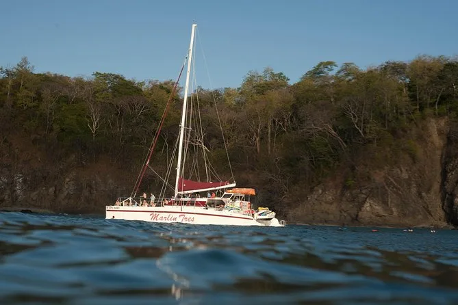 Il pomeriggio comprende quattro ore e mezza a bordo di un ampio catamarano che parte dalla spiaggia di Playas del Coco, con tutta l’attrezzatura per snorkeling inclusa (se il tempo lo consente), open bar illimitato con birra, vino, liquori e bevande analcoliche. A bordo viene servito un pranzo BBQ con pollo, riso giallo, fagioli, frutta fresca e biscotti fatti in casa, prima di tornare a riva sotto un cielo colorato dal tramonto.