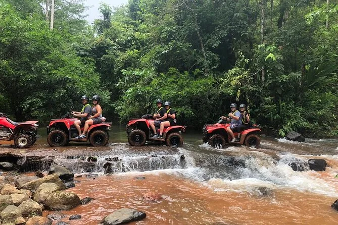 Il tuo giorno include il servizio di pickup a Jaco se necessario, il noleggio di tutta l’attrezzatura per l’ATV, l’ingresso per nuotare alla cascata e un pranzo abbondante costaricano—di solito alla fattoria di tilapia El Paz Del Campo, tranne il martedì (in quel caso ti portano in un posto altrettanto valido). Una guida locale bilingue ti accompagna in ogni tappa prima di tornare insieme alla base di Jaco.