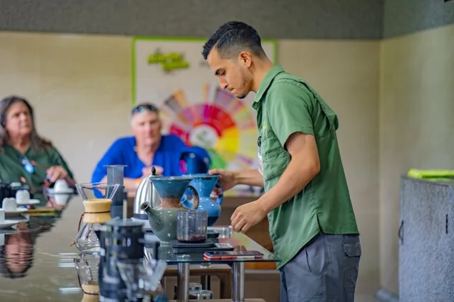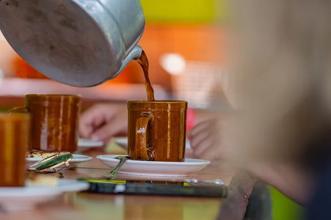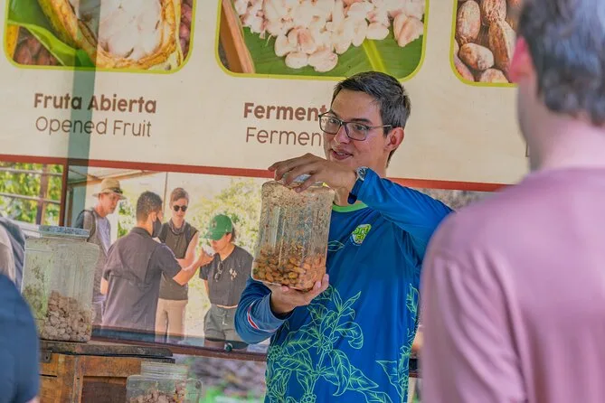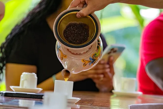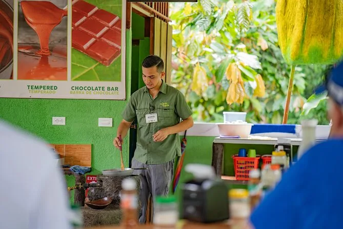 Il tuo giorno include pickup e ritorno in hotel entro 10 minuti da La Fortuna, passeggiate guidate tra piantagioni di caffè e cacao con esperto locale, sessioni pratiche di preparazione e degustazione di cioccolato, caffè o tè freschi costaricani, degustazione di succo di canna da zucchero e acqua—tutte le tasse incluse prima del rientro in hotel.