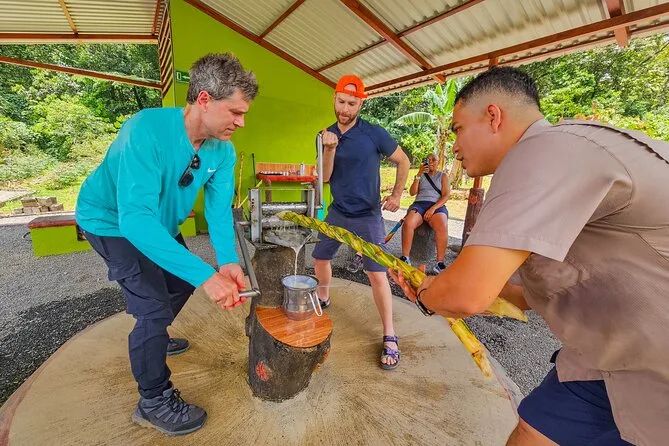 Camminerai tra i campi costaricani con una guida locale vicino al vulcano Arenal, assaggerai caffè appena raccolto, preparerai il tuo cioccolato artigianale da fave fresche e proverai l’acqua di canna da zucchero—con pickup dagli hotel di La Fortuna. Risate, mani sporche e storie da ricordare nelle giornate di pioggia ti aspettano.