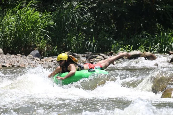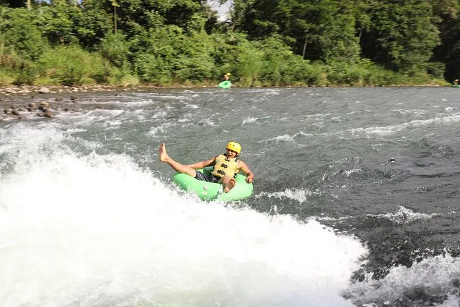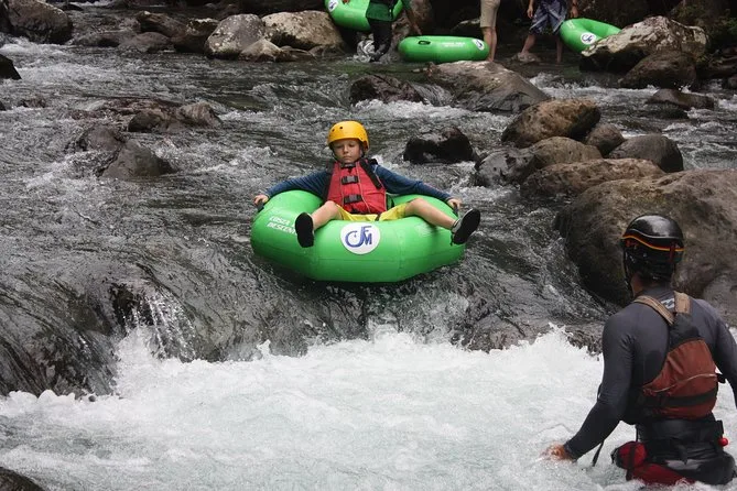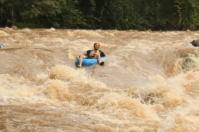 Il tour include il pick-up e drop-off in hotel nell’area di La Fortuna, trasporto andata e ritorno al fiume, attrezzatura di sicurezza per il tubing (caschi e giubbotti salvagente), frutta fresca durante la pausa sul fiume e un pranzo biologico a buffet con vista vulcano. Guide amichevoli ti accompagneranno in ogni fase.
