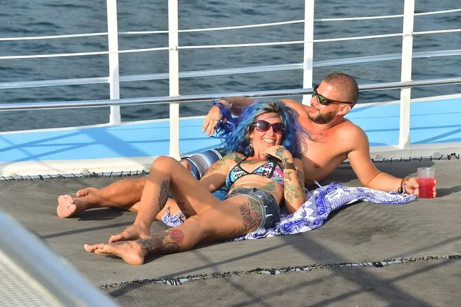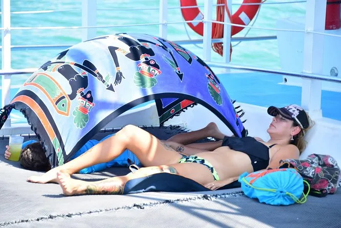 Il tuo giorno include pick-up e drop-off in hotel nell’area di Manuel Antonio (trasporto da fuori Quepos/Manuel Antonio disponibile a costo aggiuntivo), tutta l’attrezzatura per snorkeling a bordo, pranzo a buffet con pesce alla griglia, insalata di pasta con verdure fresche, frutta e caffè costaricano; succhi naturali e cocktail serviti prima del rientro a terra insieme.