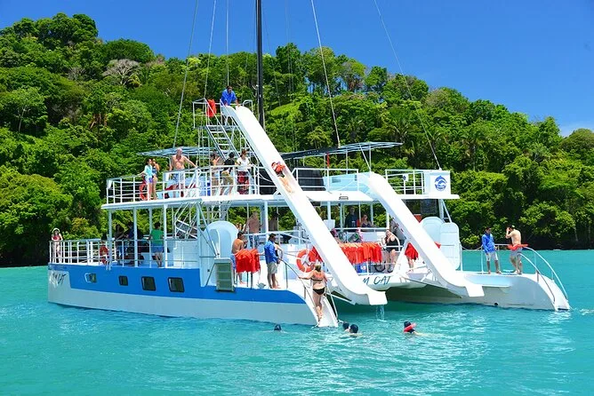 Scivola lungo la costa di Manuel Antonio in catamarano, fai snorkeling nelle acque calde di Bahia Biezans, condividi risate gustando pesce alla griglia e caffè locale, e lascia che la pura vida ti sorprenda. Incluso pick-up in hotel, attrezzatura snorkeling, cocktail e pranzo — porta solo costume e voglia di scoperte.