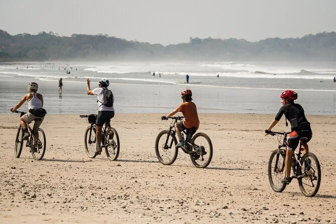 Pedalerai su bici in bambù artigianali tra quartieri, attraversamenti di fiumi, spiagge di sabbia nera e villaggi di pescatori di Nosara con una guida locale amichevole. Scoprirai storie sulle tartarughe marine a Ostional e i progetti di riforestazione vicino a Guiones. Alla fine ti aspetta un fresco cocco in mano — uno di quei momenti che ricorderai a lungo dopo il viaggio.