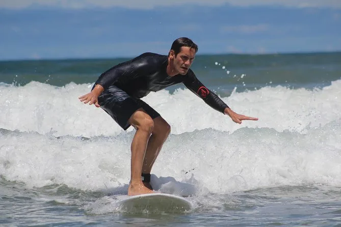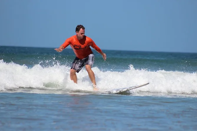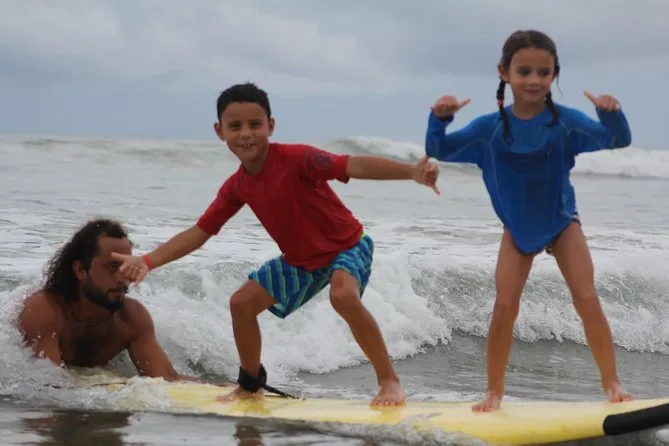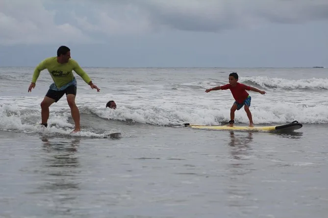 Inizi sulla tranquilla sabbia di Playa Grande con istruttori amichevoli che ti insegnano come alzarti prima di affrontare onde dolci perfette per principianti. Aspettati tante risate (e qualche caduta), una pausa con ananas fresco e acqua ghiacciata, più tante foto che catturano i tuoi momenti migliori — anche quelli meno eleganti.