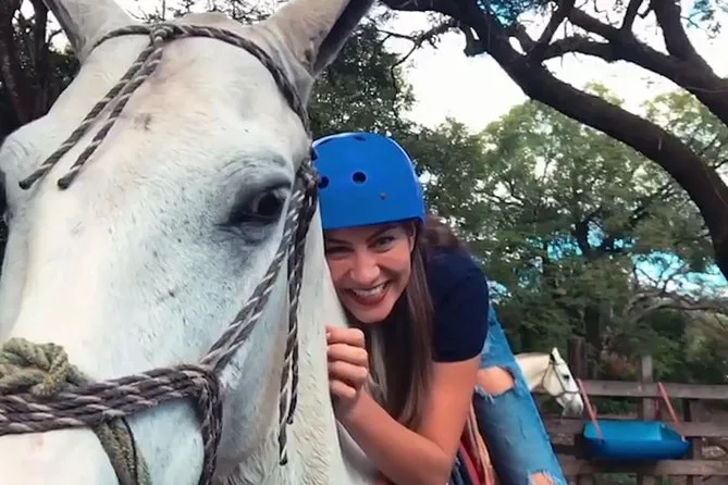 La tua giornata include pick-up mattutino in hotel da gran parte di Guanacaste con minivan climatizzato, ingressi a tutte le attività a Rincon de la Vieja con attrezzatura di sicurezza per la zipline, passeggiate a cavallo nei sentieri, oltre 5 km di river tubing sul Rio Negro con guide a supporto, pranzo a buffet completo (con opzioni per tutte le diete), acqua in bottiglia per tutta la giornata, più tempo per rilassarti alle sorgenti termali naturali e provare un bagno di fango vulcanico prima del rientro comodo.