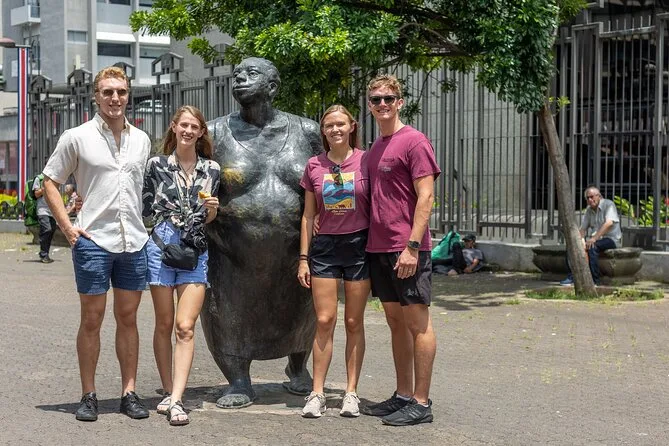 Non pensavo di perdermi così in fretta — non nel senso letterale, ma come succede quando una città ti cattura completamente. La nostra guida, Andrea, ci ha incontrati al Monumento de los Presentes (lei lo chiamava “la ribellione silenziosa” — mi è piaciuto subito) e ci ha subito spiegato perché gli indirizzi a San Jose sembrano un mistero. Sembrava ci stesse svelando uno scherzo locale. C’era un’energia mattutina ovunque: venditori che sistemavano le bancarelle, autobus che passavano rombando, e nell’aria un mix di profumi di frutta e fritture.