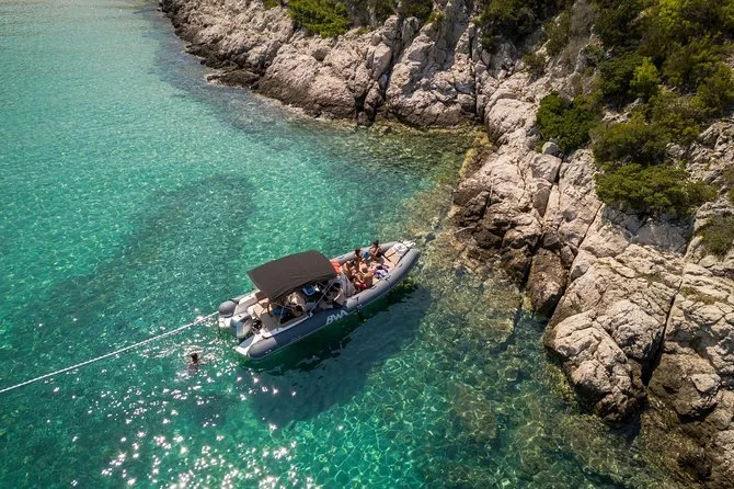 La tua giornata comprende trasporto privato in barca con uno skipper locale amichevole che ti aiuta a pianificare l’itinerario, attrezzatura di sicurezza a bordo e l’uso delle maschere per lo snorkeling durante le soste per nuotare — con tanta flessibilità per scegliere spiagge o calette lungo la costa croata prima di tornare al porto quando vuoi.